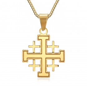 Colgante de Hombre de los Templarios de la Orden de la Cruz de Jerusalén de Acero Chapado en Oro Doradas de la Cadena de
