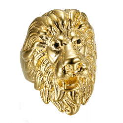 Bague tête de lion Homme Chevalière Gitan Forain Acier inoxydable Or